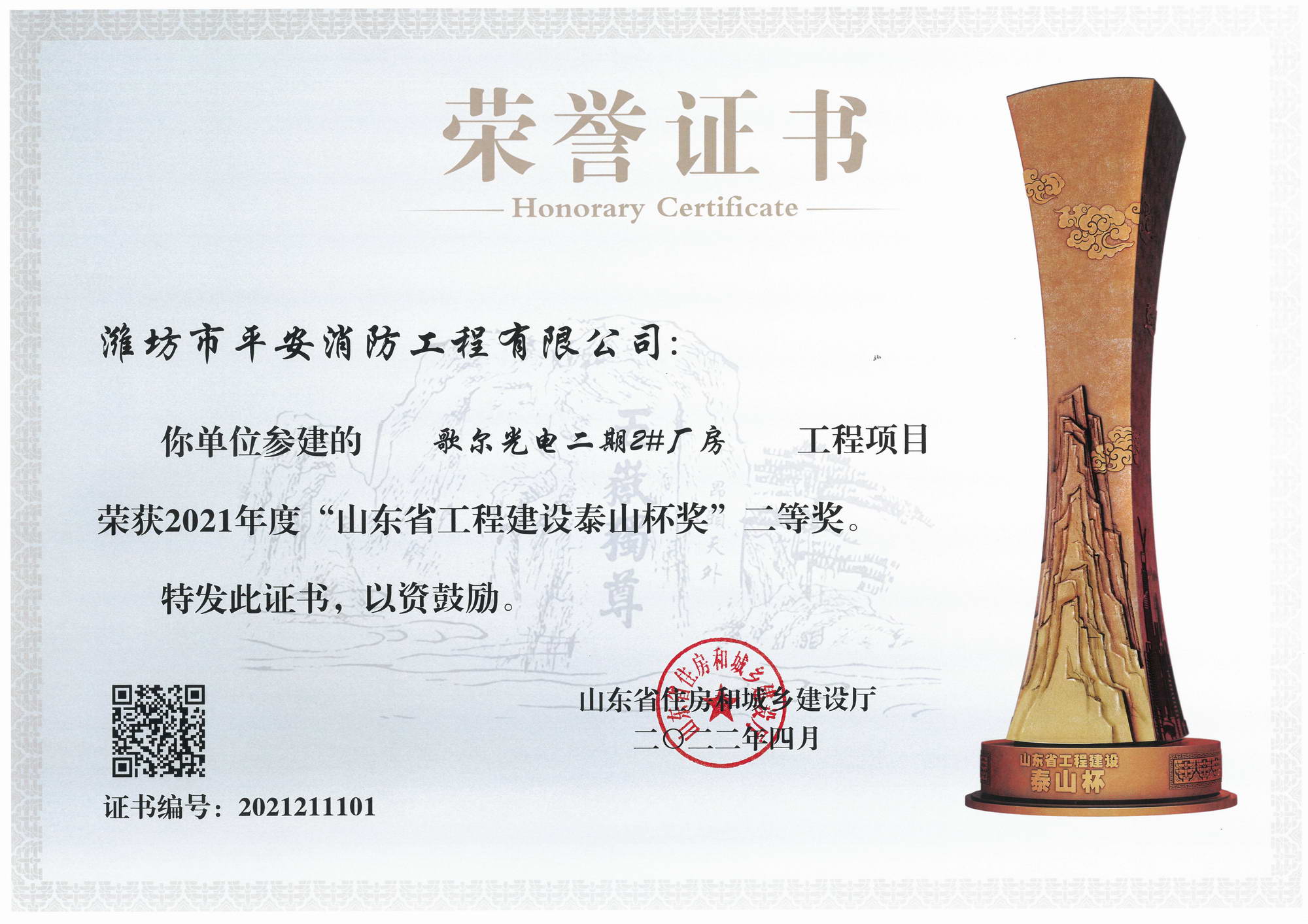 山东省工程建设泰山杯二等奖
