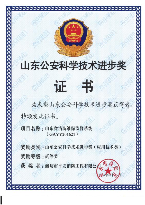山东公安科学技术进步奖二等奖
