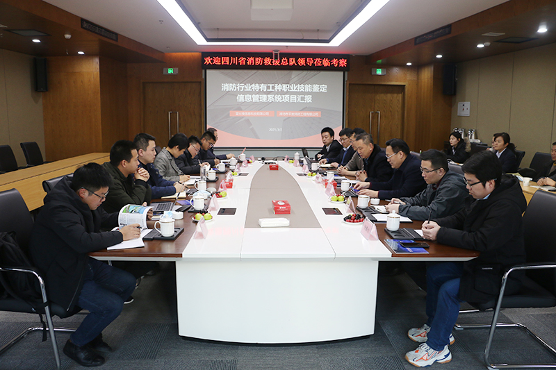 2021.3.2四川省消防救援总队陈硕总工程师一行来平安消防考察智慧消防和调研消防设施操作员考试系统。