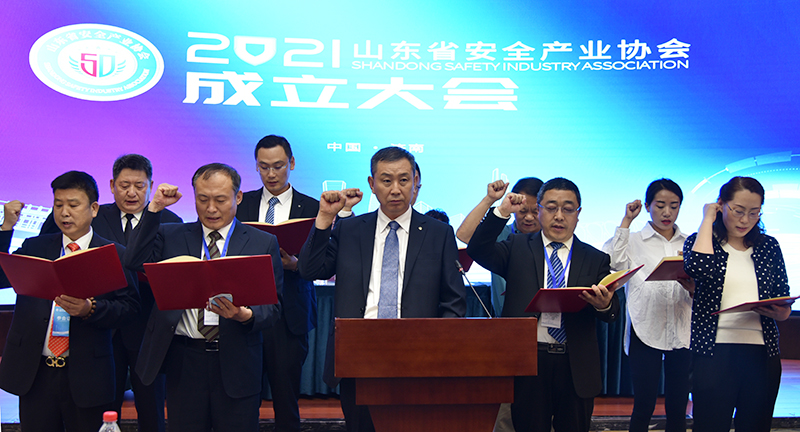 山东省安全产业协会第一届理事会会长徐介纲带领副会长单位宣读宣誓