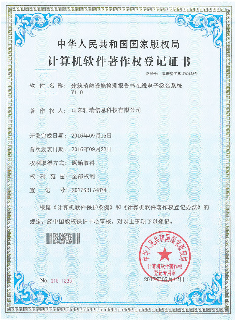 计算机软件著作权登记证书