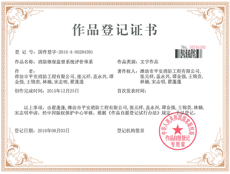消防维保监督系统评价体系_平安作品登记